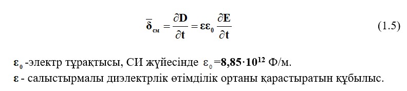 - Диэлектриктерде поляризациядан туындаған бұрылыс тогы байқалады, ток тығыздығы векторы электрлік ығысу векторының өзгеру жылдамдығына пропорционал (электрлік индукция)
