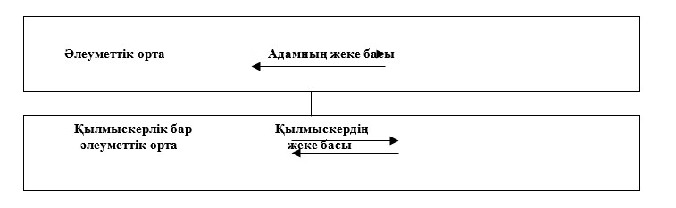 а) оған қатысатын екі тараптың - әлеуметтік орта мен жеке адамның сипаттамалары;