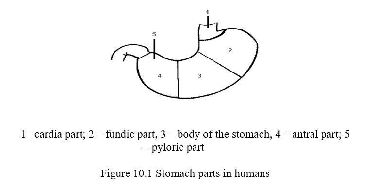 The chemical transformation of food in the stomach occurs under the influence of gastric juice. Gastric juice is a secret of 3 kinds of glands of the gastric mucosa: the central, delomorphous and mucoid cells.