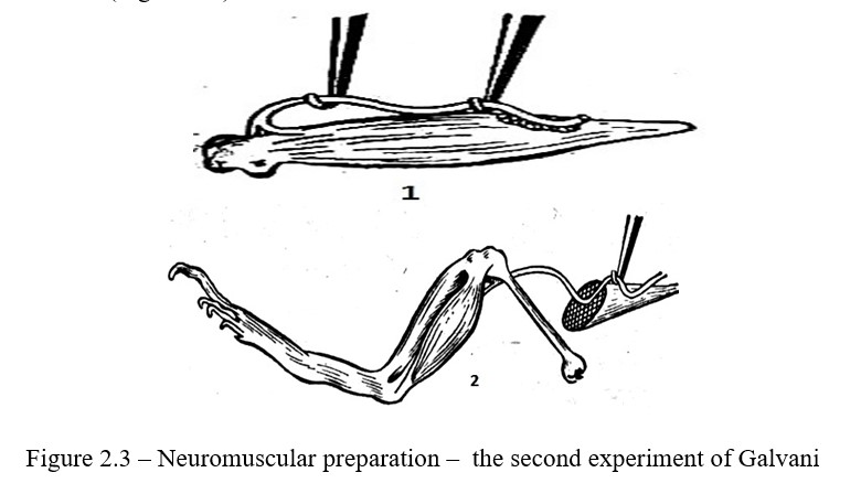 The irritant of the second nerve is the action current that occurs when the first neuromuscular preparation is excited. The excited part of the tissue is electronegatively charged, and the unexcited one, i.e. resting area is electropositively charged (Figure 2.4).