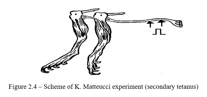 Work 4. The second experiment of Matteucci (experiment with the secondary tetanus), allowing to detect the action current