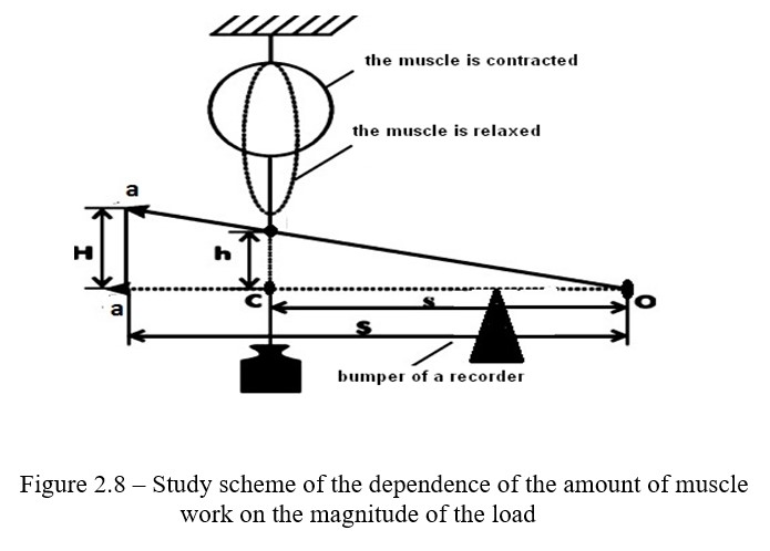 The dependence of the amount of muscle work on the magnitude of the load can be experimentally proved and expressed in the form of a graph. An apparatus for registration of muscle contractions must be assembled (Figure 2.8). For this it is necessary to use neuromuscular preparation.