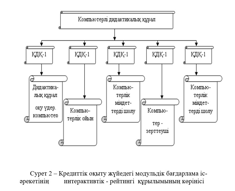 Сөйтіп, әр студенттің интеллектуалдық-рухани құндылықтары кәсіби құзыреттілік төңірегінде болмай отыр. Бүгінгі оқыту кеңістігінде бұл тегеурінді мәселені компьютер мен жүйе ғана шешетіні белгілі. Егер компьютер жүйесін оқыту іс-әрекетінде жүзеге асырсақ, кредиттік жүйедегі модульдік оқыту технологиясын бағдарламалық технологиямен кіріктіріп өткізуге мүмкіндік алар едік. Кредиттік оқыту жүйедегі модульдік-рейтингі іс-әрекетіне бейімдеу – интерактивтік технологияны іске асырады.