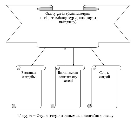 Белгілі бір курсының үлгісі студенттердің танымдық дәрежесін айқындайтын жобаға айналады. Білім жүйесі қызметінің құрамдық бөлігі – кері байланысты іске асырудың объективті және субъективті басқару тәсілдері. Кері байланыс арқылы басқару тәсілдері сол студенттердің білім ақпараттарын дұрыс не бұрыс меңгергенін бақылай алады. 47 суретте көрсетілген үлгі құрылымы бойынша алынған ақпарат ассимиляциядан өтіп оқу үдерісін алға жылжыту үшін қызмет етеді.
