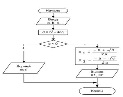 Рисунок 6.3 - Блок-схема алгоритма решения квадратного уравнения