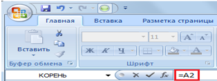 ). Затем следует нажать Ok. Проверьте теперь, что в ячейке D2 у Вас действительно находится формула =КОРЕНЬ(A2).