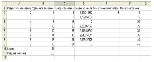 Сделайте текущей ячейку А1 и введите в неё заголовок «Результаты измерений».