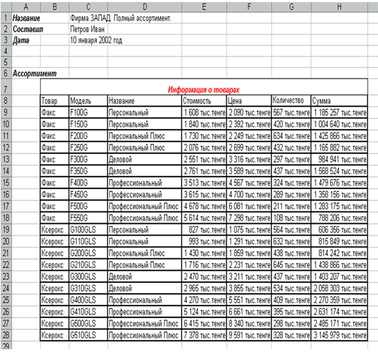 - С помощью команды Данные + Фильтр + Автофильтр на листе Полный ассортимент отфильтруйте базу данных: оставьте только персональные ксероксы. Восстановите весь список.