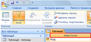 Ключевые поля в таблицах используются для создания межтабличных связей. Чтобы определить ключ, необходимо выделить строку с описанием нужного поля и нажать пиктограмму