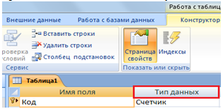 Конструктор таблиц. Чтобы добавить поле, в верхней части окна таблицы в режиме конструктора следует ввести имя поля и определить его тип. Имя поля должно содержать не более 64 символов и может включать любые комбинации букв, цифр и пробелов, а также специальных символов, за исключением точки, восклицательного знака, надстрочного символа и прямых скобок. Имя не должно начинаться с пробела и содержать управляющие символы (рисуноки 3.1-3.2)