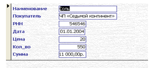 Создайте форму в режиме Мастера для таблиц ОПЕРАЦИИ, ПОКУПАТЕЛИ, ТОВАРЫ. Создание – Формы - Другие формы - Мастер форм. Форма должна выглядеть следующим образом: