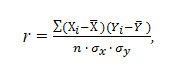 Когда измерения производят в шкале отношений или интервалов и форма взаимосвязи двух разнородных (например бег на 100 м и прыжки в длину) признаков линейная, то для определения взаимосвязи используется коэффициент корреляции Бравэ-Пирсона. Чаще всего он вычисляется по формуле