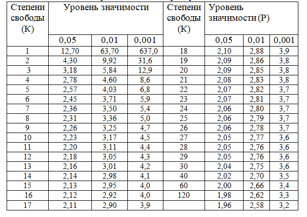 Таблица А. 3 – Стандартные значения критерия Стьюдента