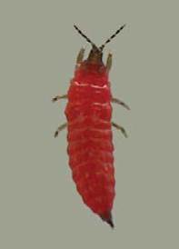 Ұзындығы 1,2–2,2 мм, денесі өте созылған, кеудесінің ортасы кең, алдыңғы және артқы жағы біркелкі; құрсағы параллель, артқы жағында тарылған, соңғы сегмент түтік түрінде созылған; қою қоңырдан қараға дейін. Мұртшалары 8 сегментті, 3 сегмент сарғыш, 5 және 6 қара; қосымша цилиясы бар қанаттар (15-сурет).