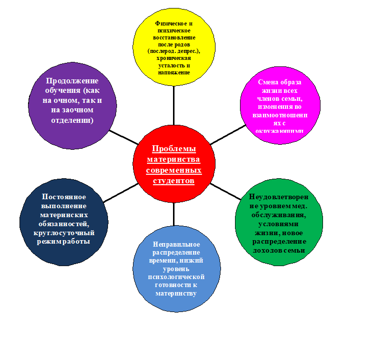 Итак, изучив понятия «материнство» и «психологическая готовность», а также выделив трудности мам, являющихся студентками в современных условиях, мы хотели бы отобразить проблемы молодых мам после рождения ребенка в рисунке 1.