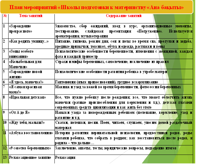 Цель программы: способствовать формированию психологической готовности к материнству.