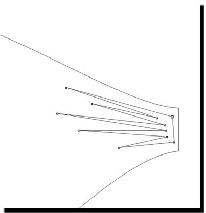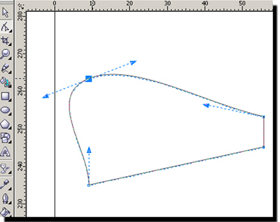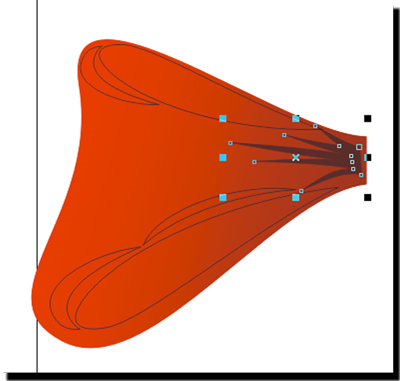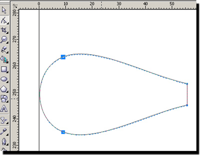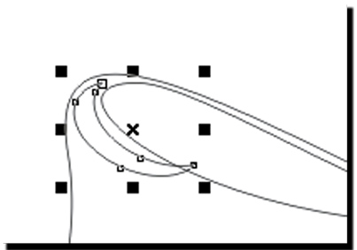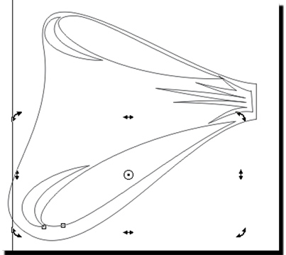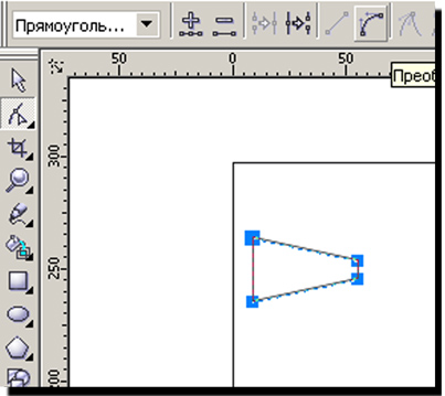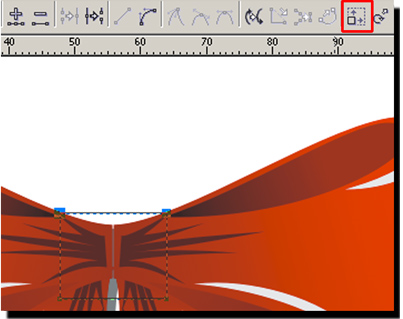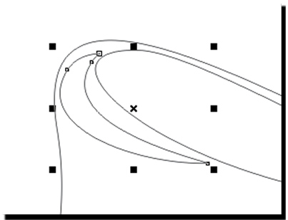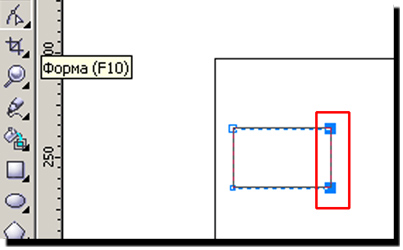 3 С помощью инструмента Shape (Форма(F10)) выделяем два крайних правых узла.