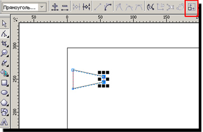 выделяем два верхних узла прямоугольника и в верхней панели