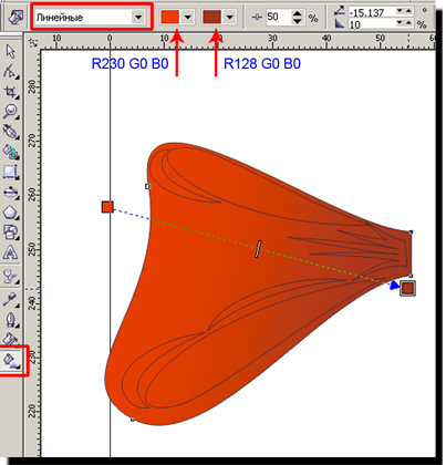 | 21 Ну вот, теперь все готово для дальнейшего творчества! Выделяем основную фигуру банта, применяем к ней линейную заливку. Цвета – на Ваш выбор – только вначале банта цвет светлее, в конце – темнее |