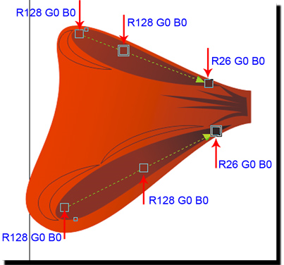 18 Инструментом Pick (Указатель) выделяем внутреннюю часть банта и блик, зажимаем на клавиатуре Ctrl и тянем мышью вниз за средний верхний указатель левой кнопкой мыши.