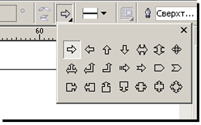 Абрис | включает панель инструментов для выбора разнообразных вариантов обводки |
