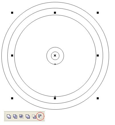 | 2) Далее выделяем 3ью и 4ую окружности и с помощью кнопочки Back Minus Front "обрезаем". | ![]() |