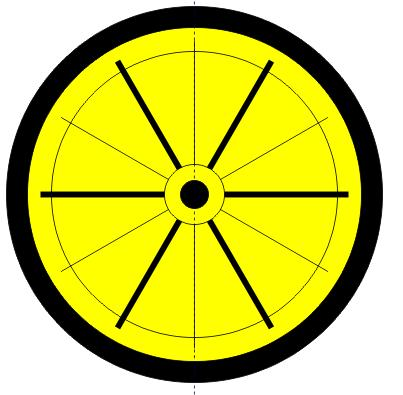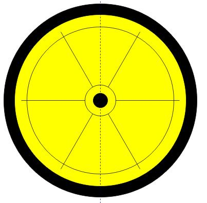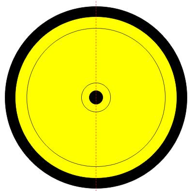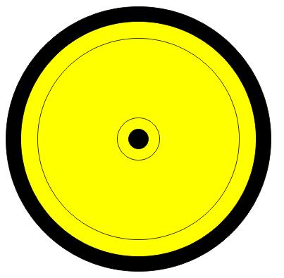 | 3) Закрашиваем окружности по схеме: 1ая - чёрный, 2ая - жёлтый, То, что у нас получилось в результате шага №2 не закрашиваем, оставляем без заливки, 5ая - чёрный. | ![]() |