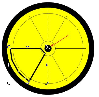 | Далее перемещаем центр вращения (как в шаге №6) этой фигуры в центр (простите ещё раз за повторение) самой маленькой окружности (5ой). Вот, что должно быть: | ![]() |