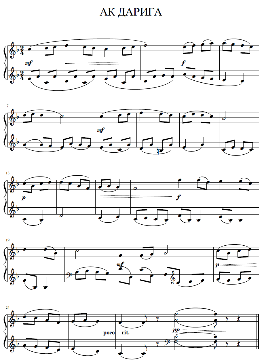 Орындауға арналған нұсқаулық: легато және стаккато, легато және нон легато штрихтары үйлесімін нақты орындау қажет. Ұзақ ноталарды соңына дейін тыңдау, тастамау.