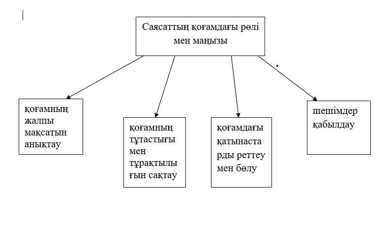 Саясаттың қоғамдағы рөлі мен маңызы, оның атқаратын қызметінен келіп шығады: