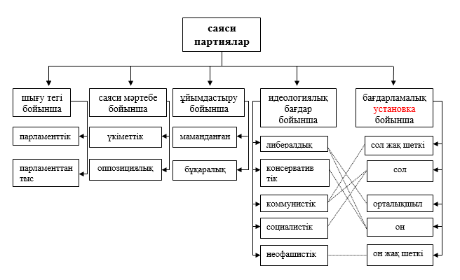 Саяси жүйедегі рөлі мен іштей ұйымдасуына байланысты саяси партияларды 4 түрге бөледі: