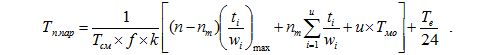 Тni - производственные циклы простых процессов изготовления деталей или выполнения сборочных процессов, час.;