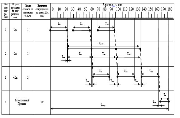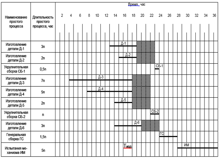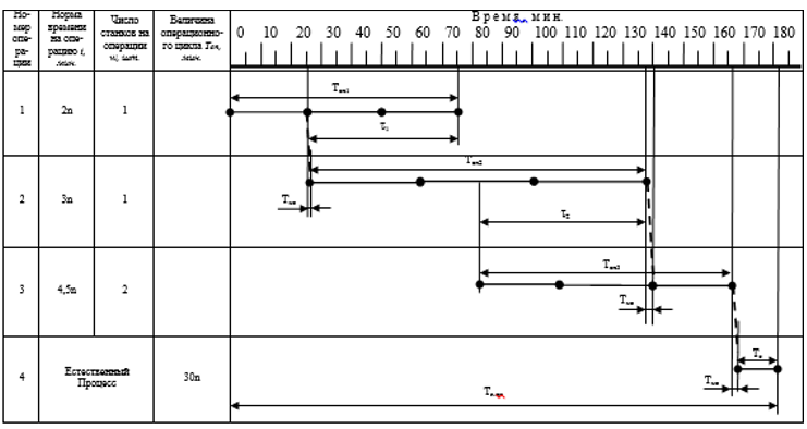 Рисунок 1.5 - График производственного цикла сложного процесса.