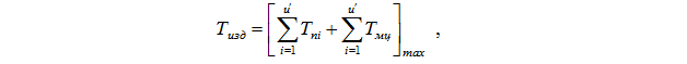По построенному графику производственного цикла сложного процесса анализируются сроки опережения одних простых процессов другими и определяется общая продолжительность цикла сложного процесса производства изделия Tизд. как наибольшая сумма циклов последовательно связанных между собой простых процессов и межцикловых перерывов.