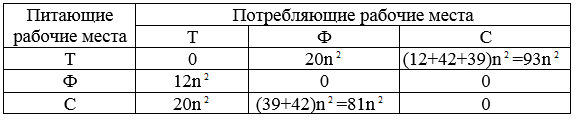 Расположение видов рабочих мест по номерам столбцов и строк матрицы соответствует заданному варианту планировки. Ситуация меняется при изменении варианта планировки.