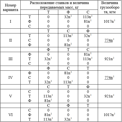 Аналогично приведенным выше расчетам определяется грузооборот участка по всем вариантам расположения оборудования.