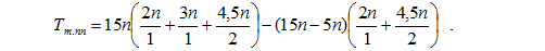 Определить длительности технологического и производственного циклов обработки партии деталей из 15n штук (где n-номер варианта студента) при последовательном, параллельно-последовательном и параллельном видах движения предметов труда. Величина транспортной партии – 5n деталей; норма времени по операциям соответственно 2n, 3n, 4.5n мин/шт. На первой и второй операциях установлено по одному станку, на третьей – два станка. Среднее время межоперационных перерывов – 2 минуты. Работа производится в 3 смены. Длительность смены 8 часов. Длительность естественных процессов – 30n минут.