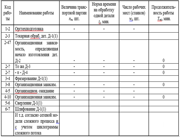 Число рабочих мест (станков) на операциях wi до оптимизации графика следует принять равным единице.
