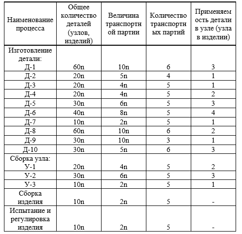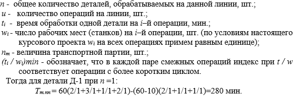 Учитывая все вышеизложенное, при выполнении настоящего курсового проекта в качестве укрупненных ритмов прерывно-поточных линий следует принимать длительности специализированных потоков по обработке деталей, а также длительности отдельных операционных потоков по укрупнительной сборке узлов, сборке всего изделия, его испытаниям и регулировке.