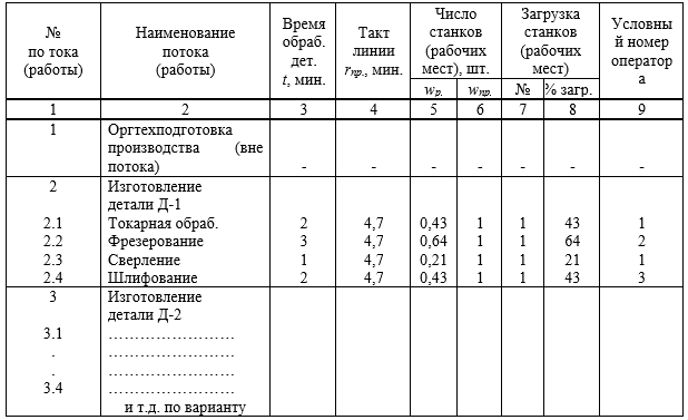 В проектируемом производственном процессе наряду со сборочными операциями имеет место механическая обработка деталей при различной трудоемкости их изготовления и неодинаковой производительности разнотипного оборудования. Все это предопределяет выбор прерывно-поточной (прямоточной) формы организации производства и свидетельствует о неизбежности возникновения межоперационных заделов обрабатываемых деталей и сборочных единиц.