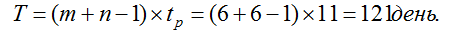 Как условились ранее, число «n» во всех примерах расчета равно 11. Тогда, с учетом технологической последовательности выполнения работ, получим следующую картину затрат времени (в днях):