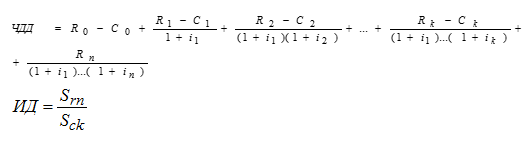 Следует подчеркнуть, что в расчете индекса доходности используются не отдельно взятые значения доходов и затрат по отдельным расчетным периодам, а полные суммы доходов и затрат за весь период реализации проекта, приведенные к одному сроку (времени начала реализации проекта):