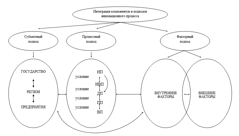 Более детальная интеграция всех компонентов инновационного процесса: субъектов, подпроцессов, факторов, условий наглядно представлена на рисунке 5.