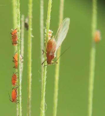 Рисунок 7 – Колония большой злаковой тли – Sitobion avenae F., крылатая самка расселительница и личинки