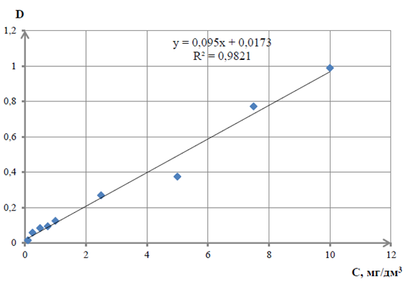 По градуировочному графику находят содержание железа общего (рисунок 4.2).