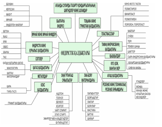 9.8-сурет – Өнеркəсіптік қалдықтардың түрлер імен топтары бойынша жіктелуі