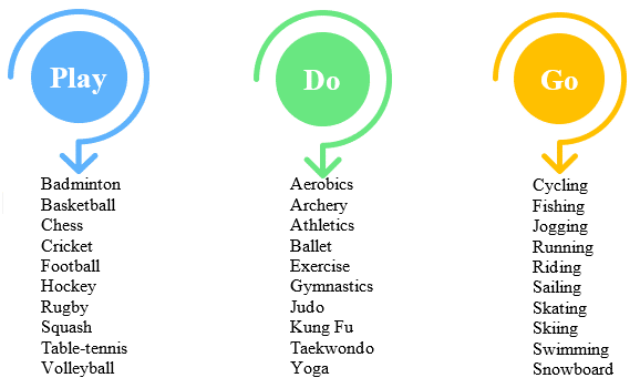 - Vocabulary work. PLAY, DO and GO with sports and activities.