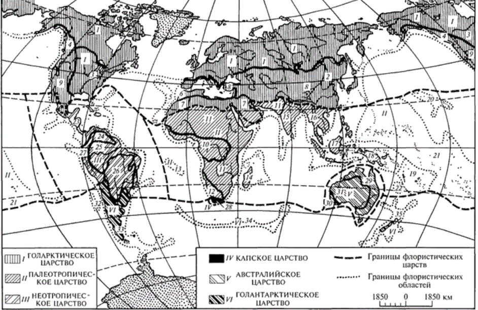 Ары қарай біз А. Л. Тахтаджян әзірлеген аудандастыру жүйесін ұстанамыз [2, б. 124]. Бұл жүйе бойынша Жер 6 флоралық патшалыққа бөлінген: