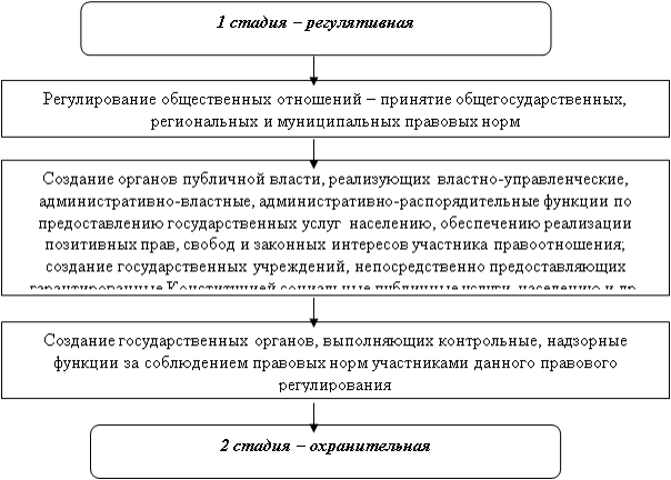 - этап реализации прав и обязанностей.