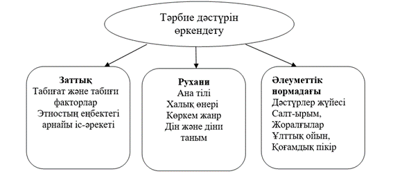 – этноәлеуметтік институт (белгілі бір этностың мәдениетіндегі тәрбие жүйесі) және тәрбие мазмұнын іс-әрекет арқылы бағыттау.